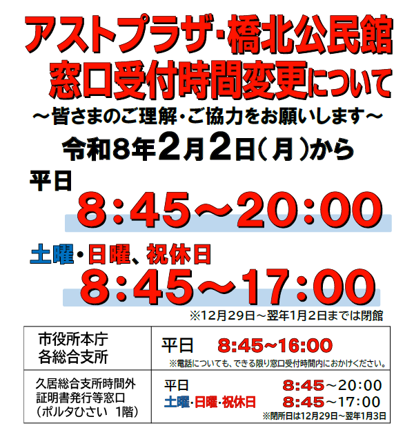 ※:津市役所本庁・各総合支所等、その他の施設の窓口受付時間については、 こちら をご確認ください。